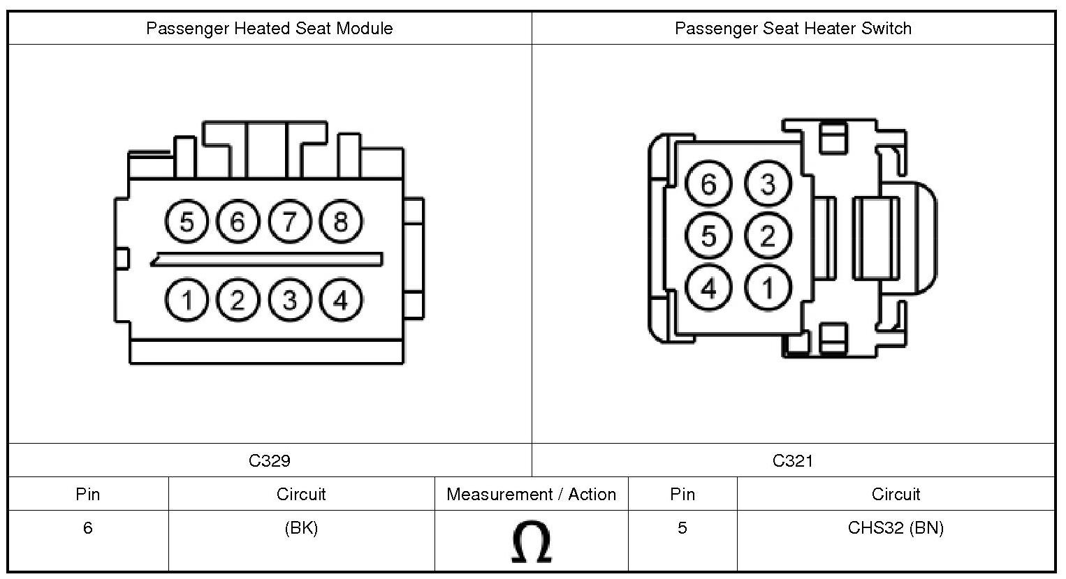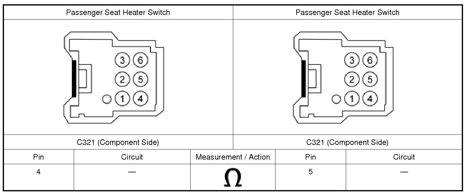 1. Connect: Passenger Seat Heater Switch.