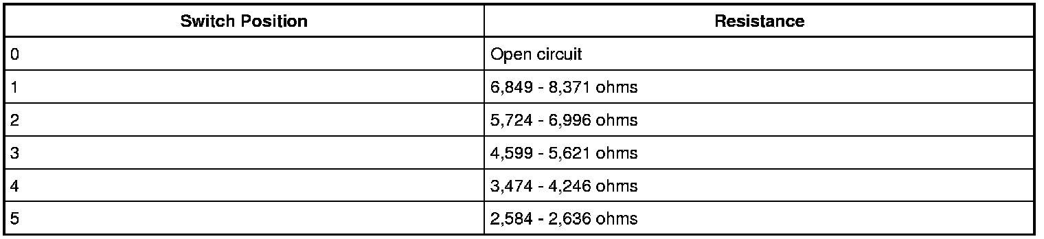 2. Measure the resistance of the passenger seat heater switch in each position: