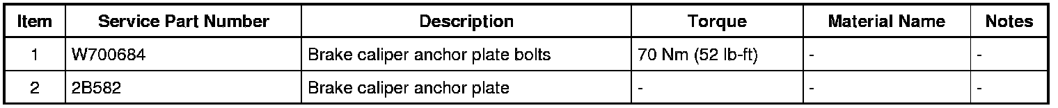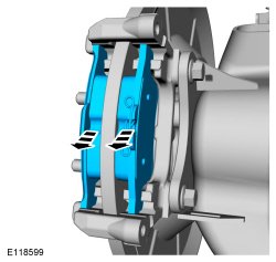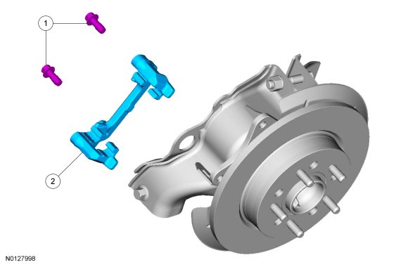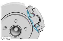 NOTICE: Do not allow the brake caliper and anchor plate assembly to hang from the brake hose or damage to the hose can occur.