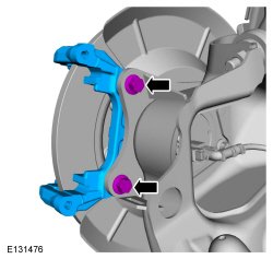 5. Remove the 2 bolts and the brake caliper anchor plate.