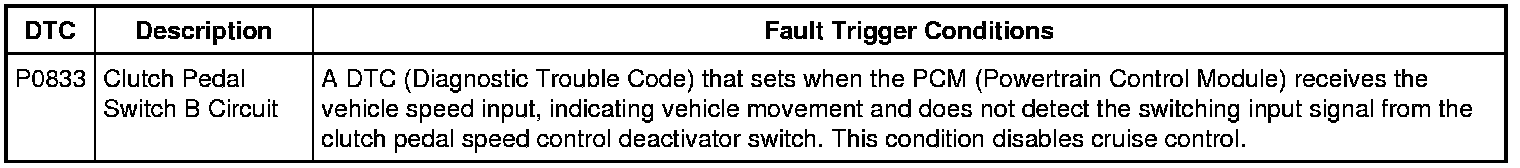 1. Disconnect: Clutch Pedal Cruise Control Deactivator Switch.
