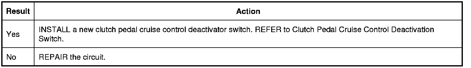 2. CHECK THE CLUTCH PEDAL CRUISE CONTROL DEACTIVATOR SWITCH SIGNAL CIRCUIT FOR A SHORT TO GROUND