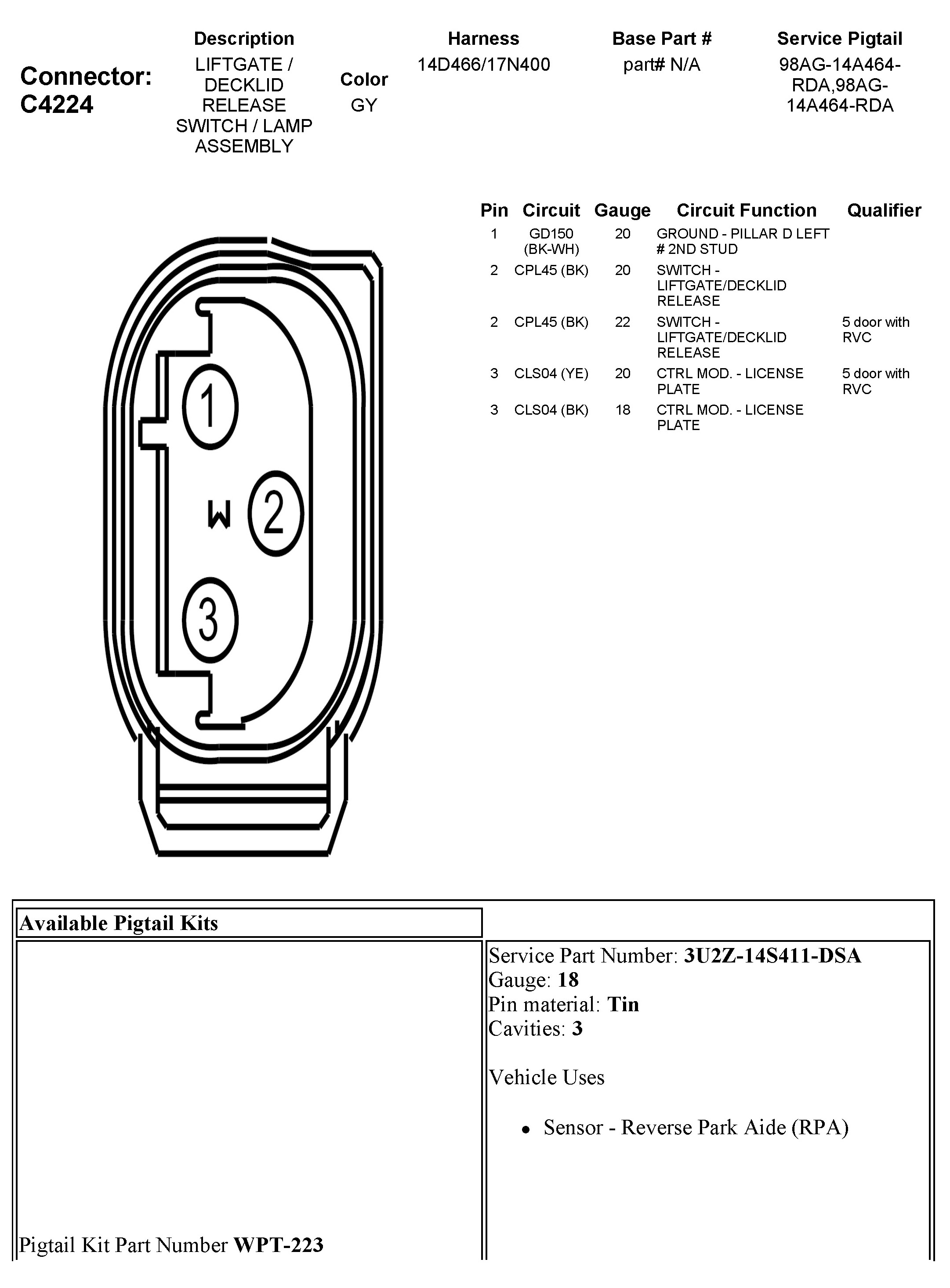 Power Trunk / Liftgate Lock Switch