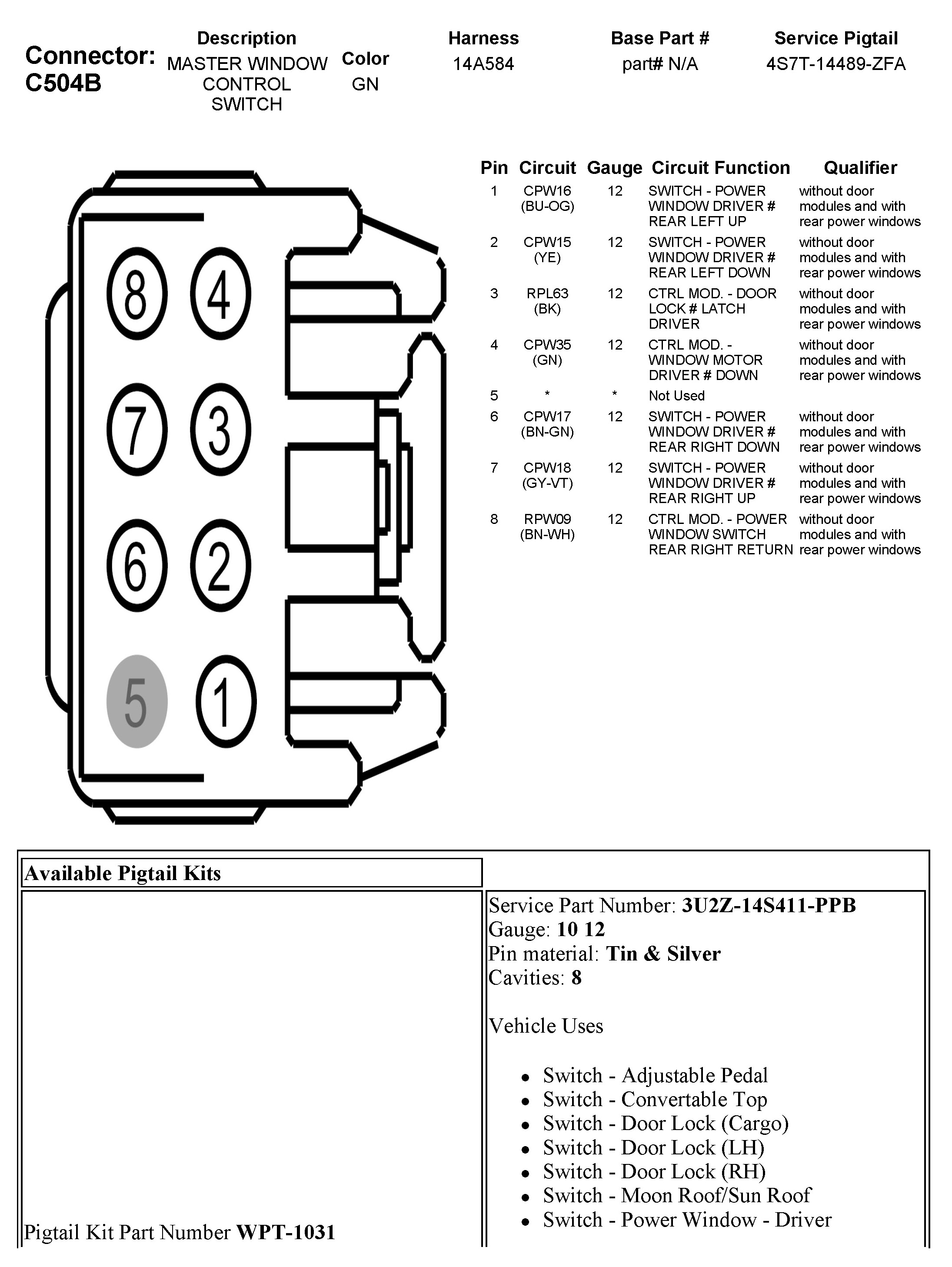 C504B Master Window Control Switch