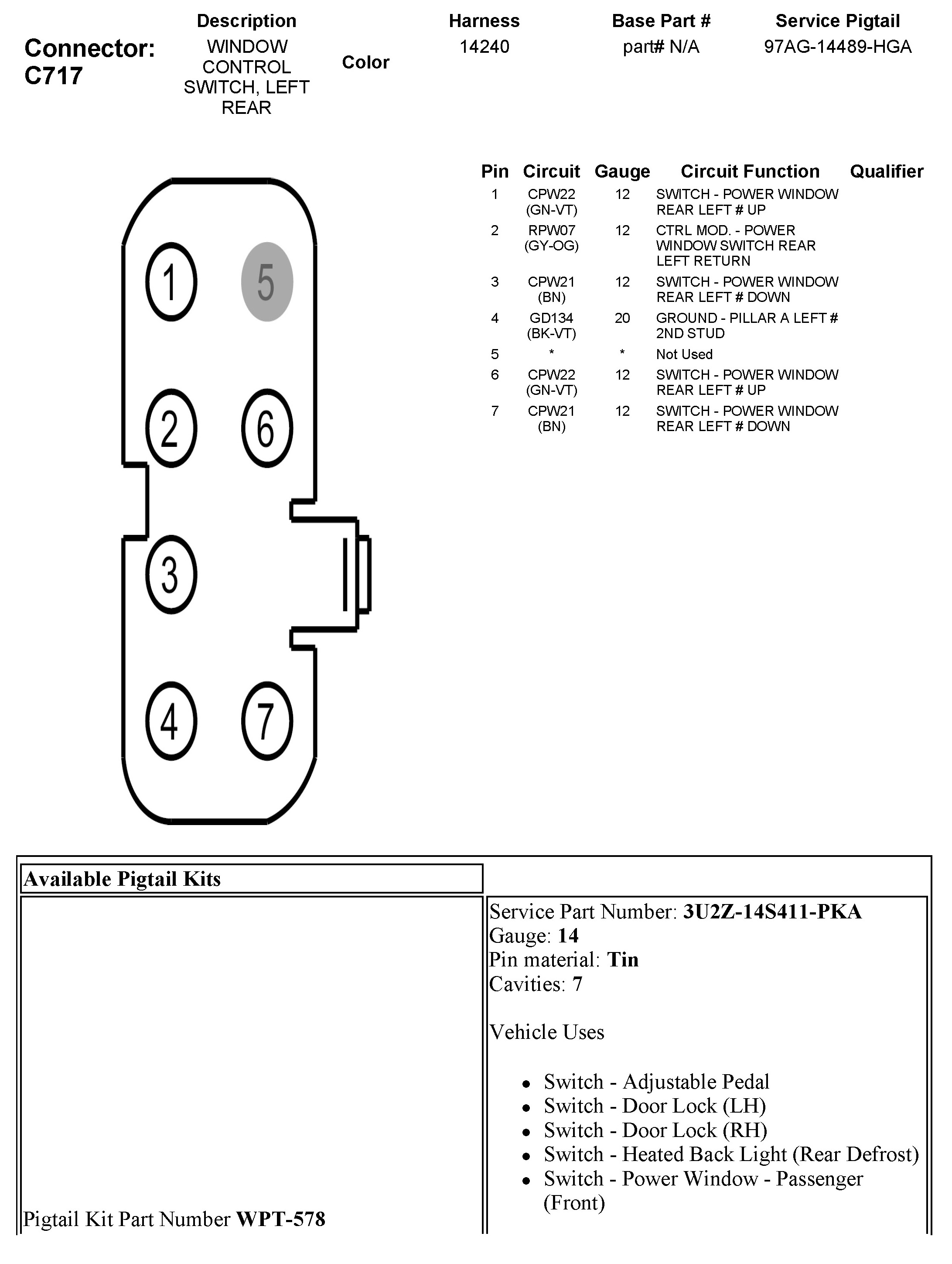 C717 Window Control Switch, Left Rear