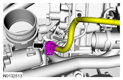 9. Attach the electrical connector and the wiring harness pin-type retainer to the RH (Right Hand) upper side of the intake manifold.