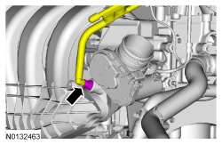 - Position back the intake manifold to allow access to disconnect the crankcase ventilation oil separator tube from the intake manifold.