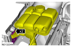13. Position the degas bottle onto the 2 retaining tabs.