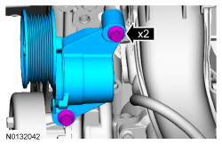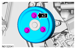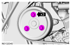 12. Tighten the 3 coolant pump pulley bolts.
