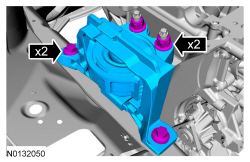 5. Install the engine mount and install the 2 nuts and bolts finger tight and tighten in 2 stages.