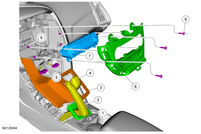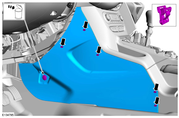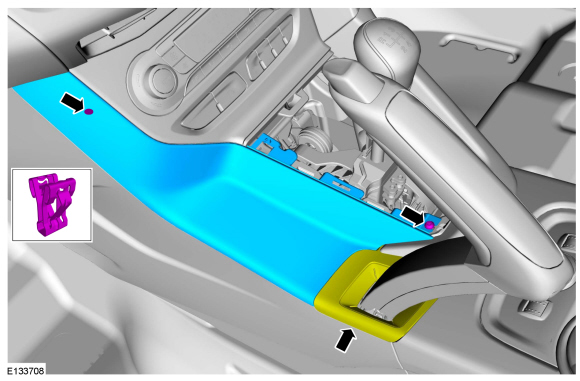 4. Remove the LH (Left Hand) floor console side trim panel retainer and remove the LH (Left Hand) floor console side trim panel.
