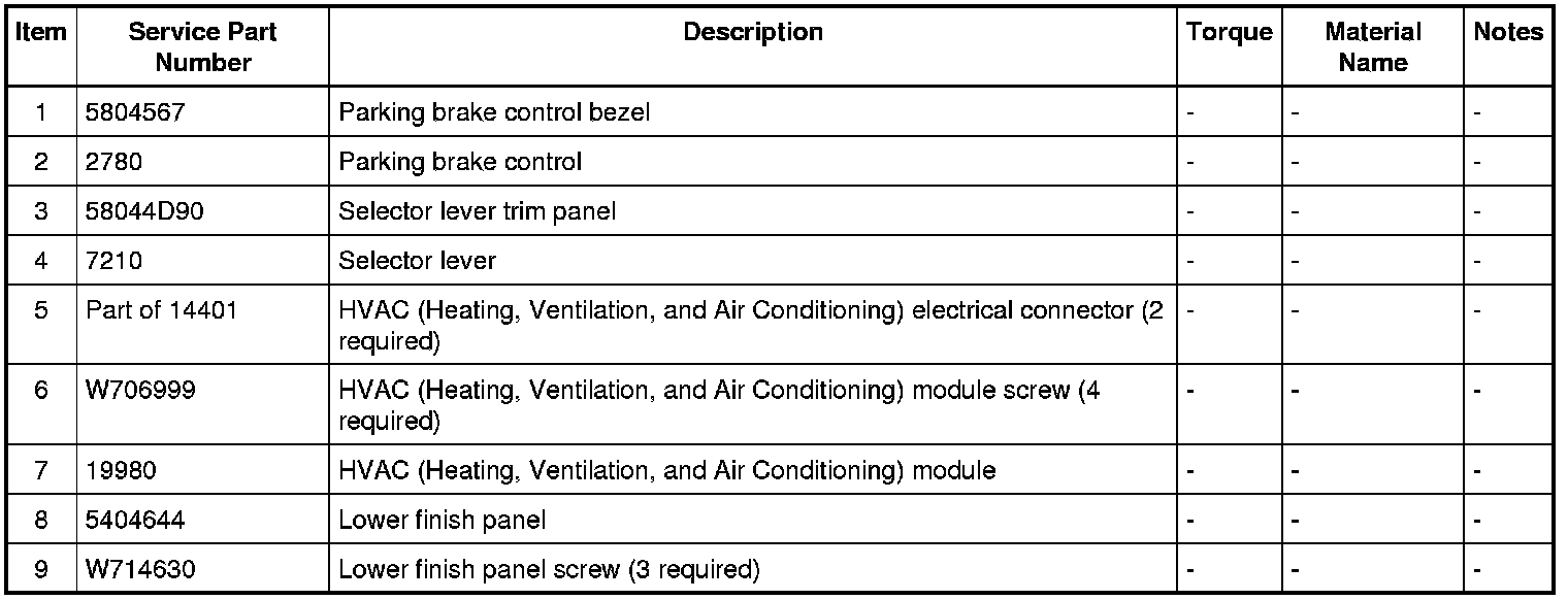 8. Remove the 3 lower finish panel screws, disconnect the 2 HVAC (Heating, Ventilation, and Air Conditioning) electrical connectors remove the lower finish panel. Remove the 4 HVAC (Heating, Ventilation, and Air Conditioning) module screws and remove the HVAC (Heating, Ventilation, and Air Conditioning) module.