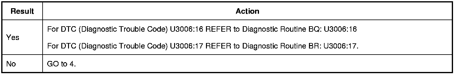 Is DTC (Diagnostic Trouble Code) U3006:16 or DTC (Diagnostic Trouble Code) U3006:17 recorded?