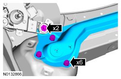 1. Install and tighten the 2 new rearward subframe bolts to 140 Nm (103 lb-ft).
