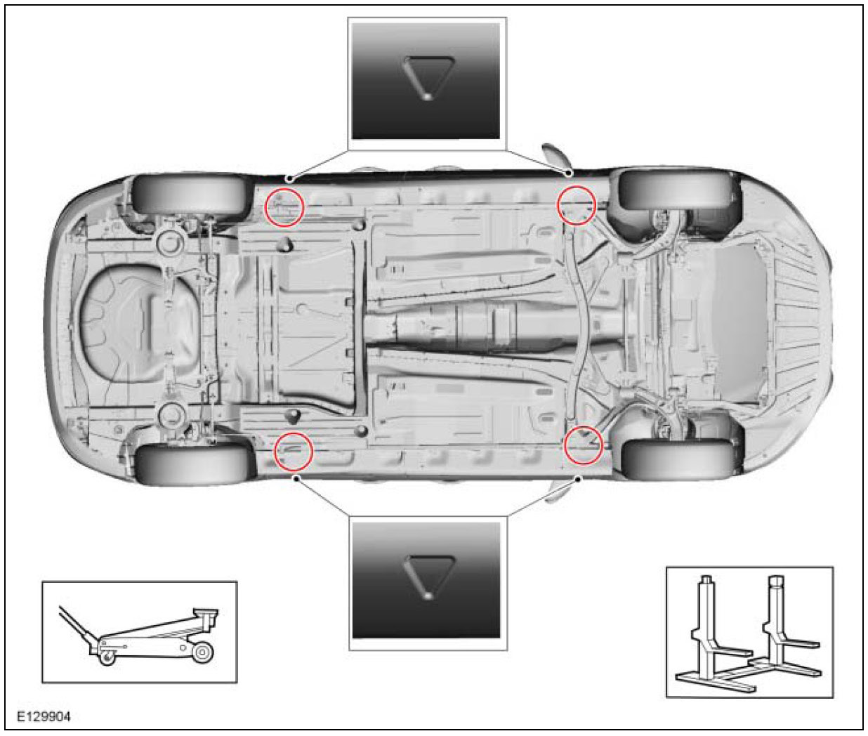 - When raising a vehicle on a twin-post hoist, use care when positioning the vehicle so that the hoisting forks do not interfere with suspension components, mounting brackets or stabilizer mounting brackets, if equipped. In addition, use care in hoist positioning to avoid possible damage to the axle carrier or rear cover.