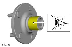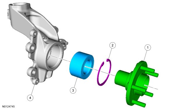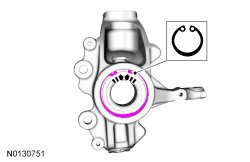 NOTICE: Once the wheel bearing is installed, make sure the wheel speed sensor ring on the bearing and the sensor hole on the wheel knuckle are clean or damage to the wheel speed sensor or sensor ring may occur.