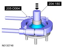 If necessary, use 204-180 (T93P-5493-A) , 205-D064 (D84L-1123-A) and a hydraulic press to remove the wheel bearing inner race from the wheel hub.