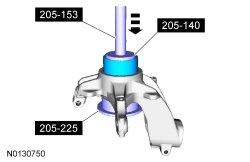 Using 205-153 (T80T-4000-W) , 205-140 (T80T-4000-F) , 205-225 (T85T-1225-BH) and a hydraulic press, install the new wheel bearing to the wheel knuckle.