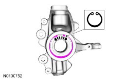 1. NOTICE: Make sure the wheel bearing is installed into the wheel knuckle with the wheel speed sensor ring (black in color) toward the inner face of the wheel knuckle.