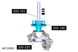 3. Using 205-153 (T80T-4000-W) , 205-140 (T80T-4000-F) , 205-225 (T85T-1225-BH) and a hydraulic press, install the wheel hub into the wheel knuckle.