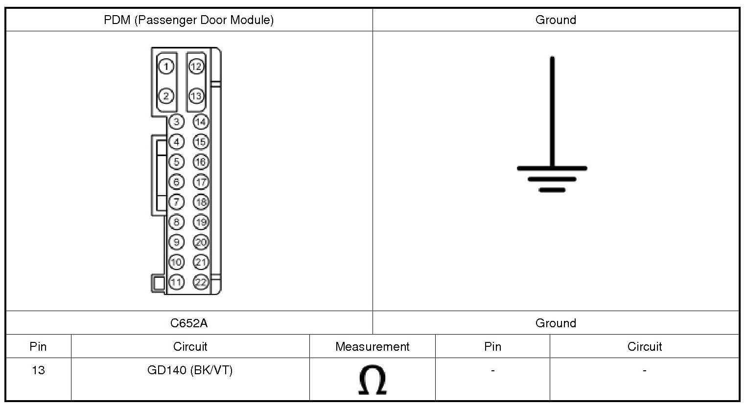 2. CHECK THE PDM (Passenger Door Module) GROUND CIRCUIT FOR AN OPEN