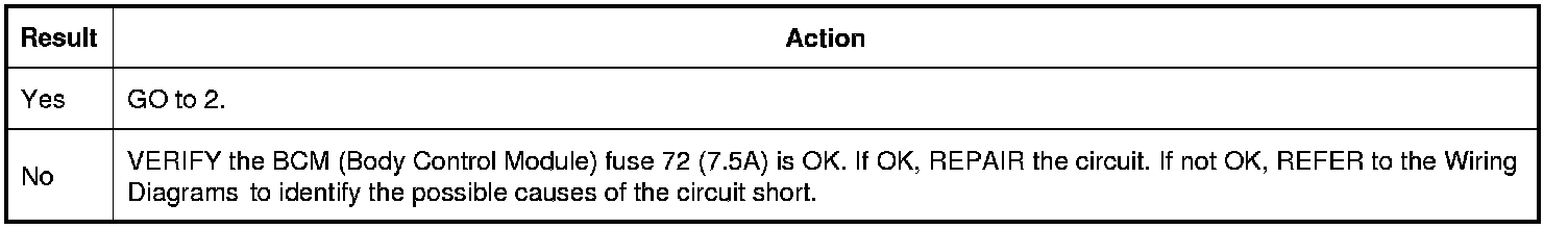 Verify BCM (Body Control Module) fuse 72 (7.5A) is OK.