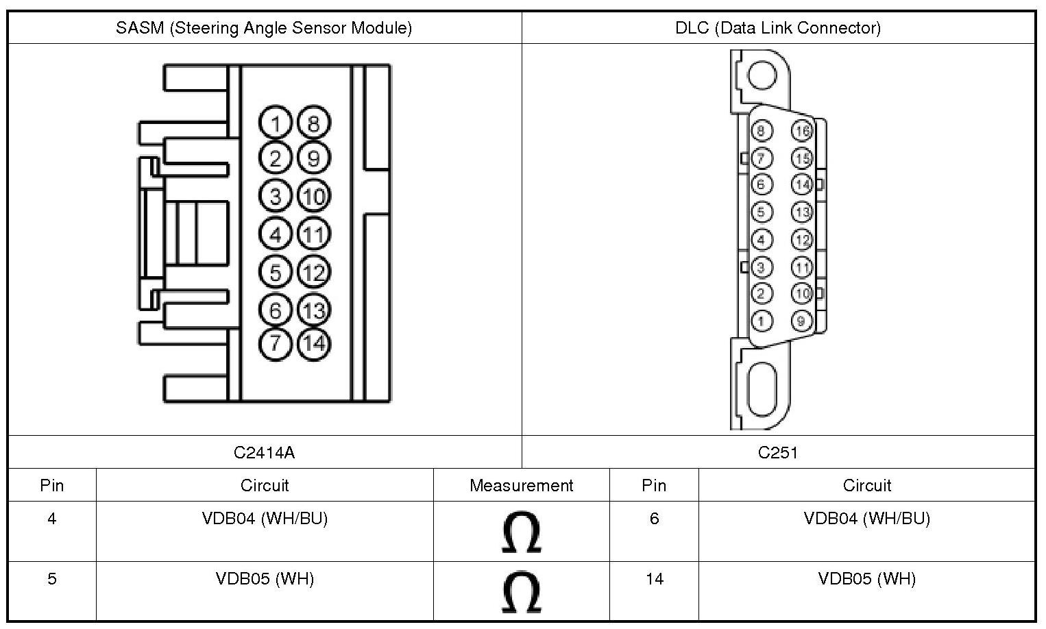 3. CHECK THE HS-CAN (High Speed Controller Area Network) CIRCUITS BETWEEN THE SASM (Steering Angle Sensor Module) AND THE DLC (Data Link Connector) FOR AN OPEN