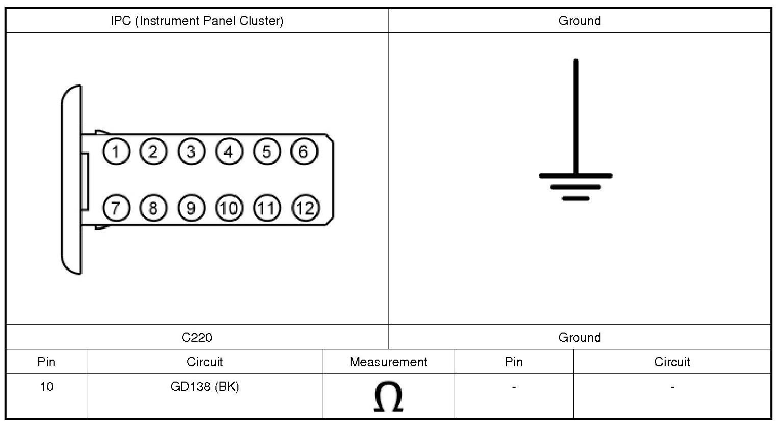 2. CHECK THE IPC (Instrument Panel Cluster) GROUND CIRCUIT