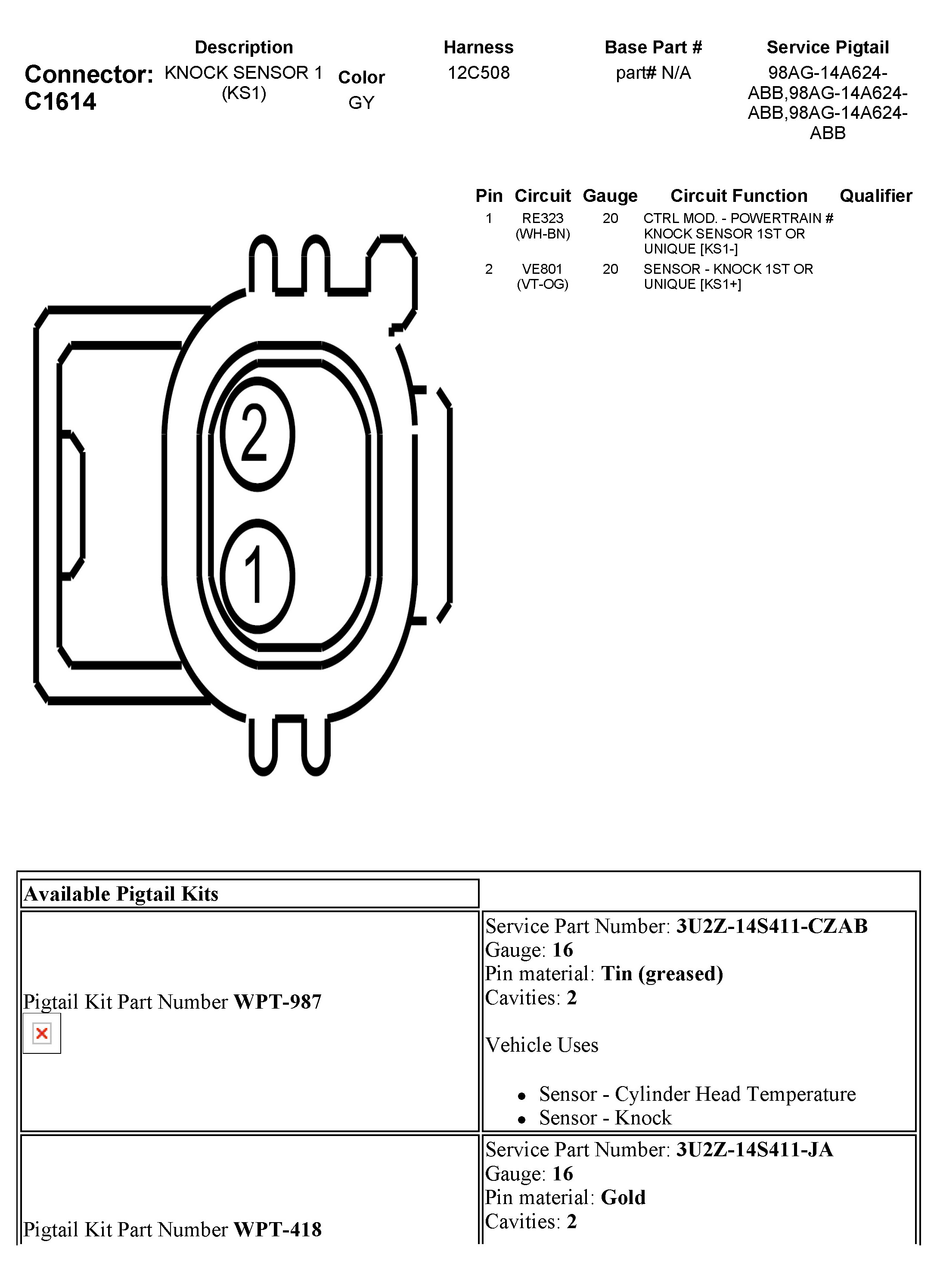 C1614 Knock Sensor 1 (KS1)