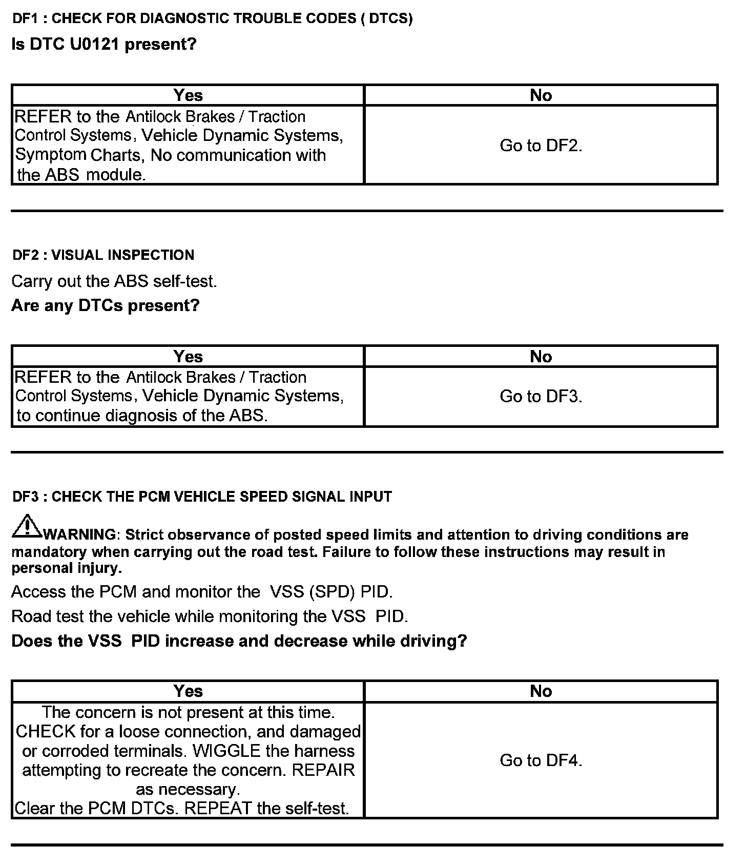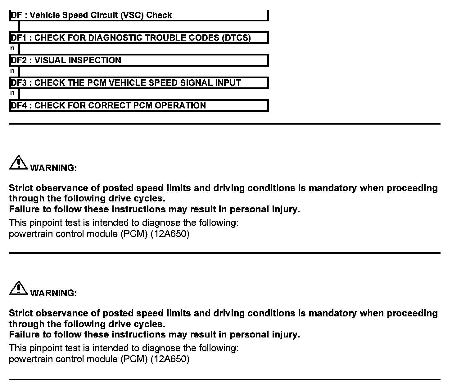Test DF: Vehicle Speed Circuit (VSC) Check