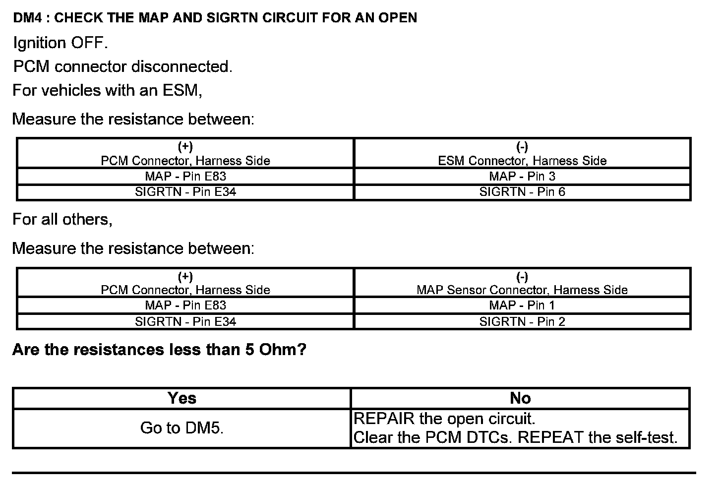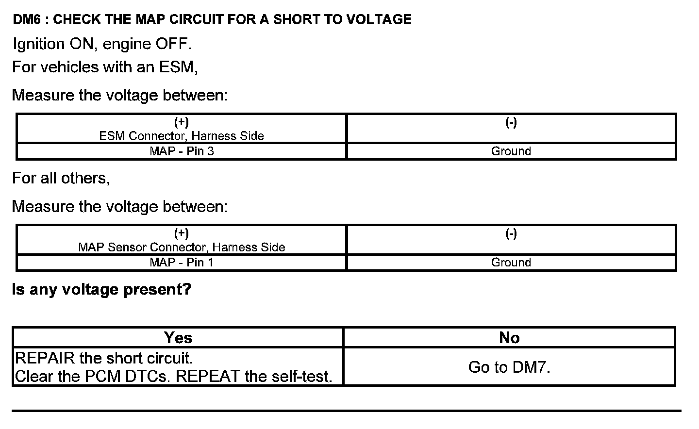 Test DM: Manifold Absolute Pressure (MAP) Sensor