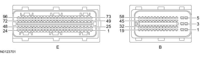 Powertrain Control Module (PCM) Connector - For PCM connector views or reference values, refer to Reference Values.