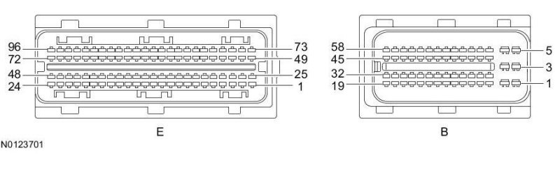Powertrain Control Module (PCM) Connector - For PCM connector views or reference values, refer to Reference Values.