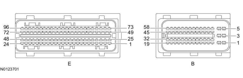 Powertrain Control Module (PCM) Connector - For PCM connector views or reference values, refer to Reference Values.
