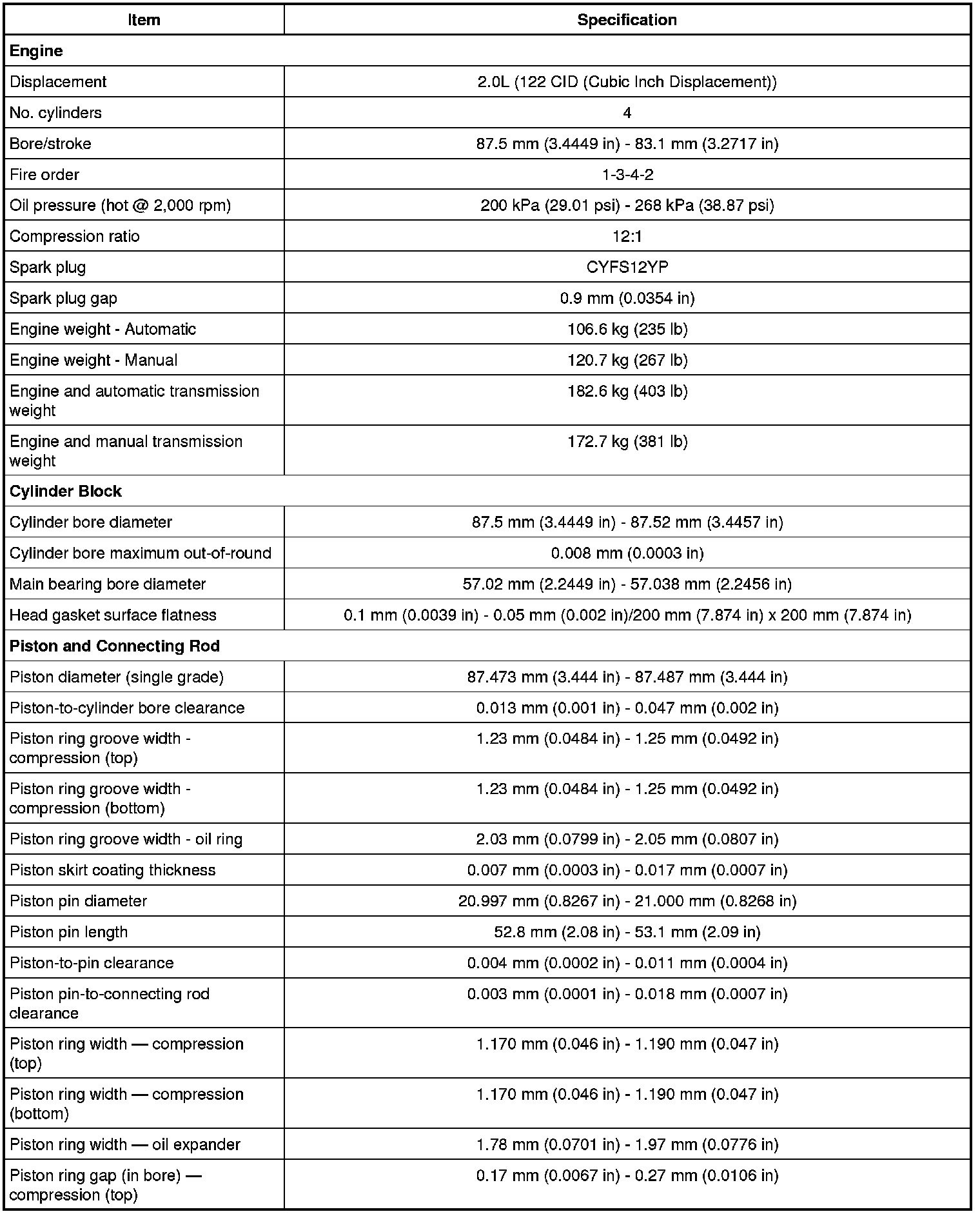 Exhaust Manifold Specifications
