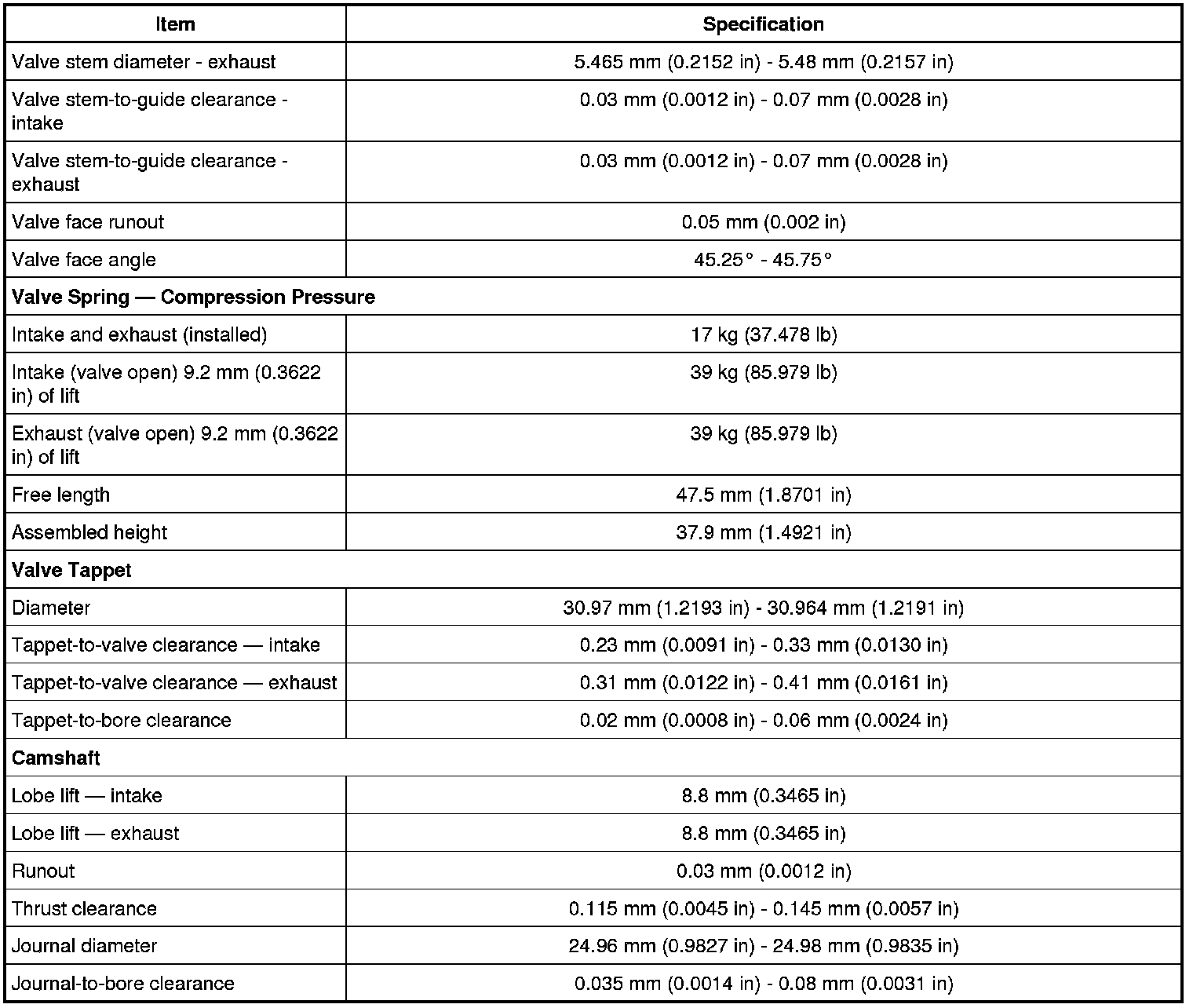 Camshaft Gear/Sprocket Torque Specifications