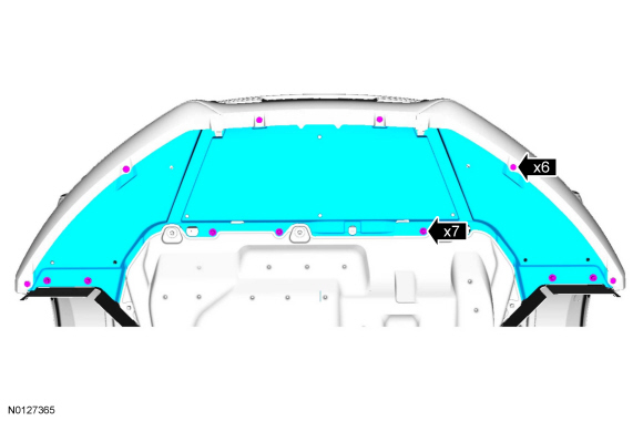 5. Position the radiator air deflector, and install the 7 screws and 6 pushpins.