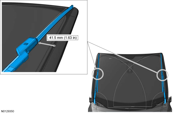 Gently pull the windshield wiper blades out toward the A-pillar moulding until the distance between the wiper arm and the A-pillar moulding is 41.5 mm (1.63 in).