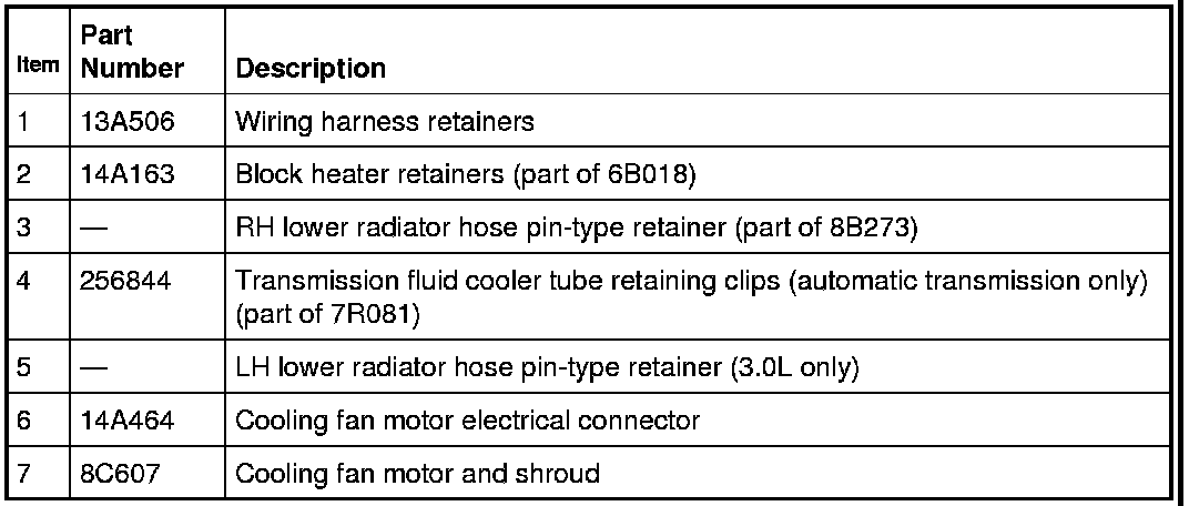 1. Detach all the wiring harness retainers from the cooling fan and shroud.