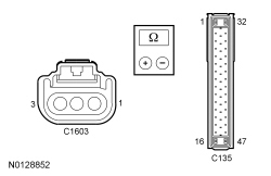 - Measure the resistance between the ABS module C135, harness side and the brake booster vacuum sensor C1603, harness side as indicated in the following chart: