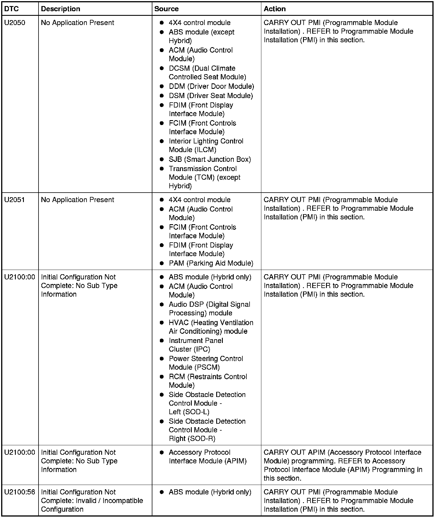 NOTE: Some modules on this vehicle utilize a 5-character DTC followed by a 2-character failure-type code. The failure-type code provides information about specific fault conditions such as opens, or shorts to ground. Continuous Memory DTCs have an additional 2-character DTC status code suffix to assist in determining DTC history.
