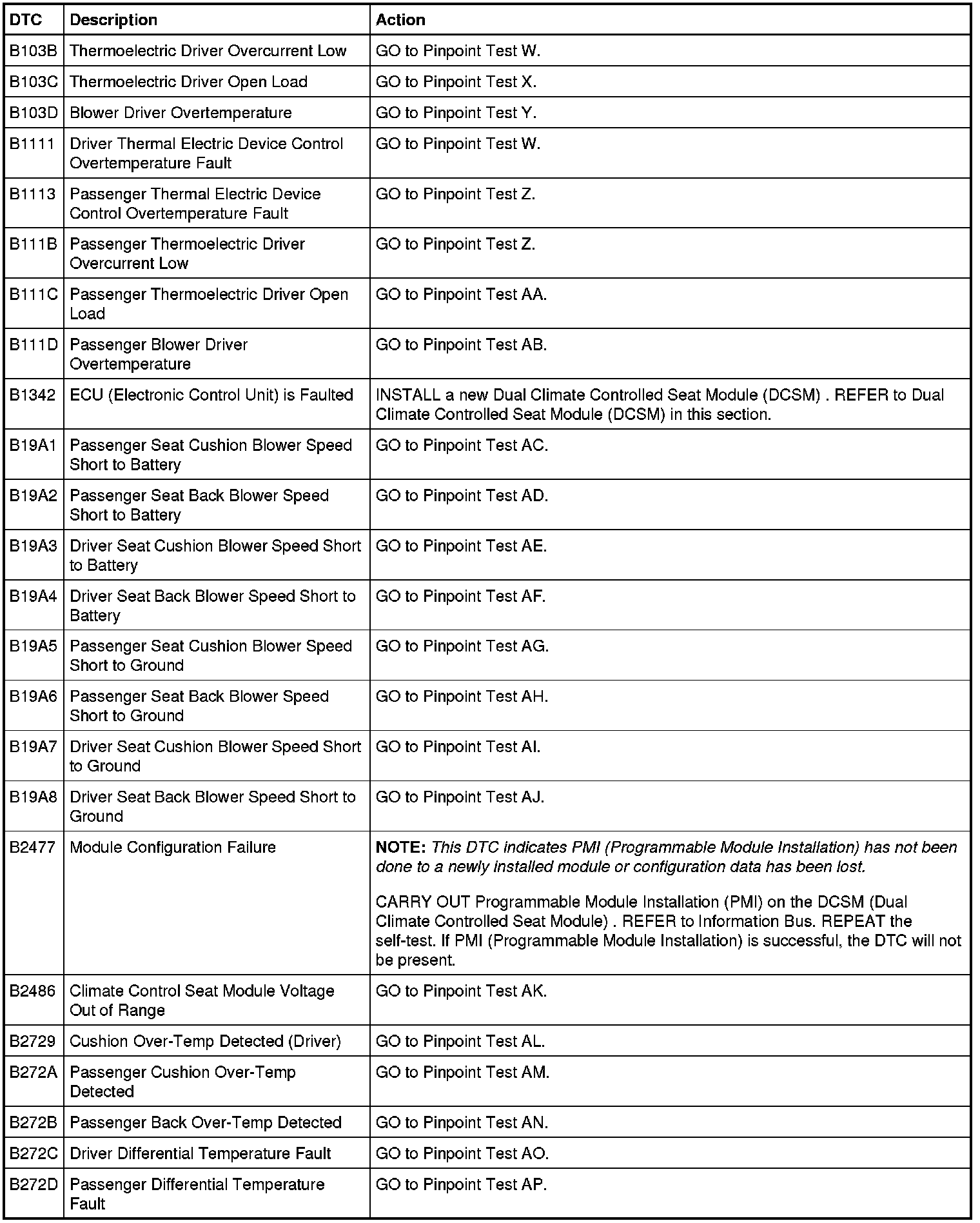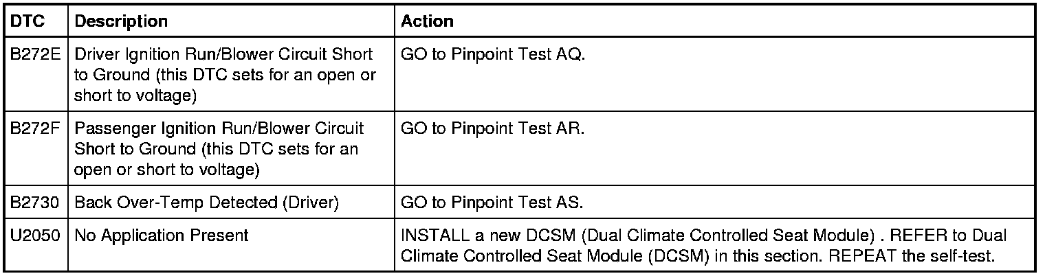 Dual Climate Controlled Seat Module (DCSM) DTC Chart