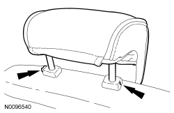 Under the backrest foam pad, squeeze the ends of the head restraint guide sleeves together and remove.