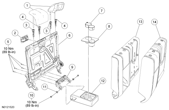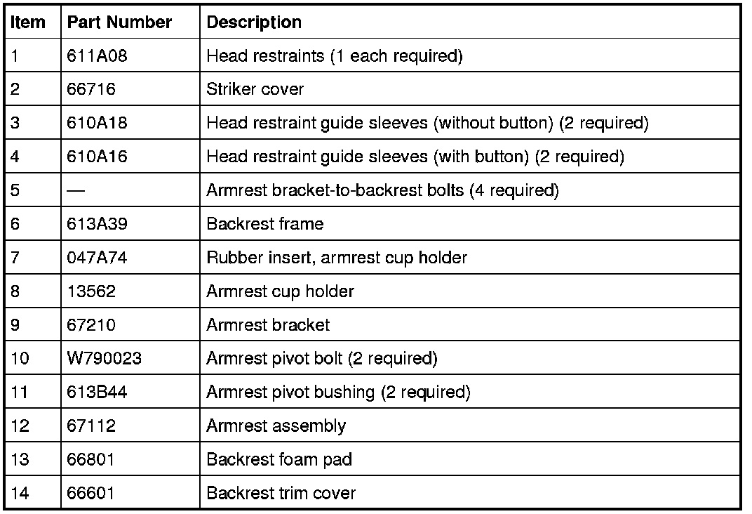12. NOTE: The head restraint guide sleeves are keyed and will not interchange. To assemble, install the head restraint guide sleeve with the button on the LH side.