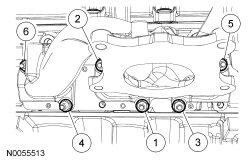 Using a new gasket, install the RH exhaust manifold and 6 new nuts. Tighten in 2 stages in the sequence shown: