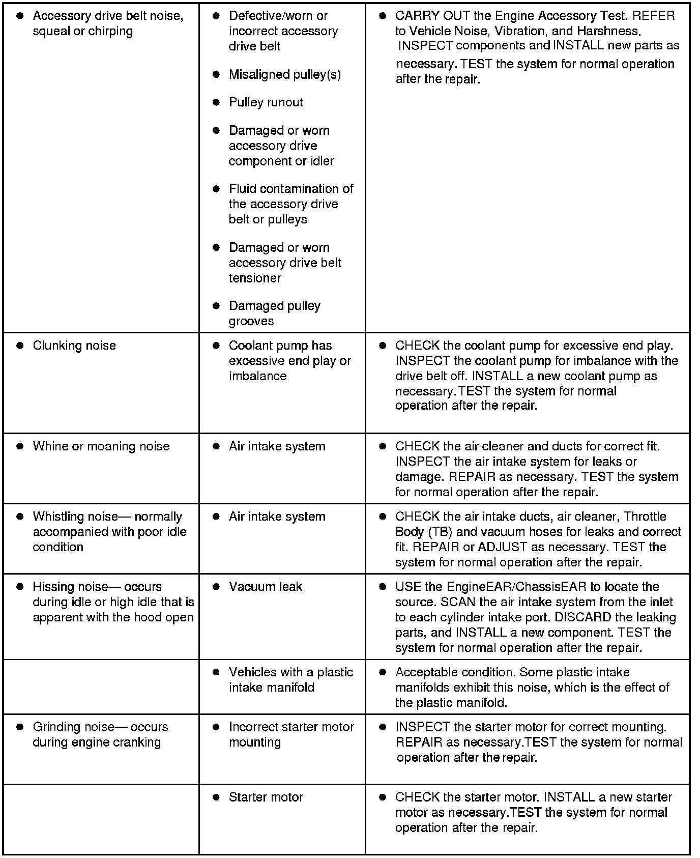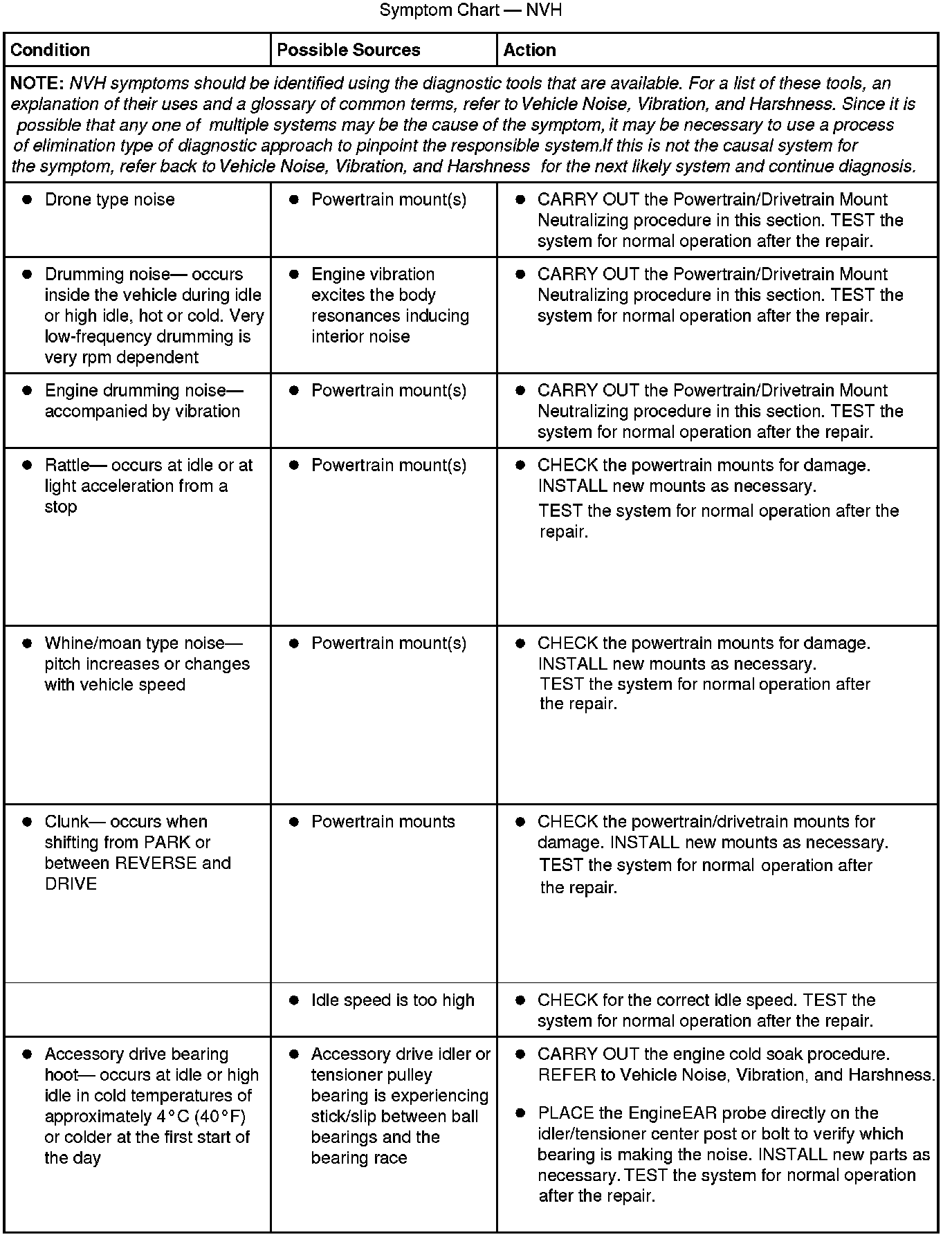 Symptom Chart - NVH