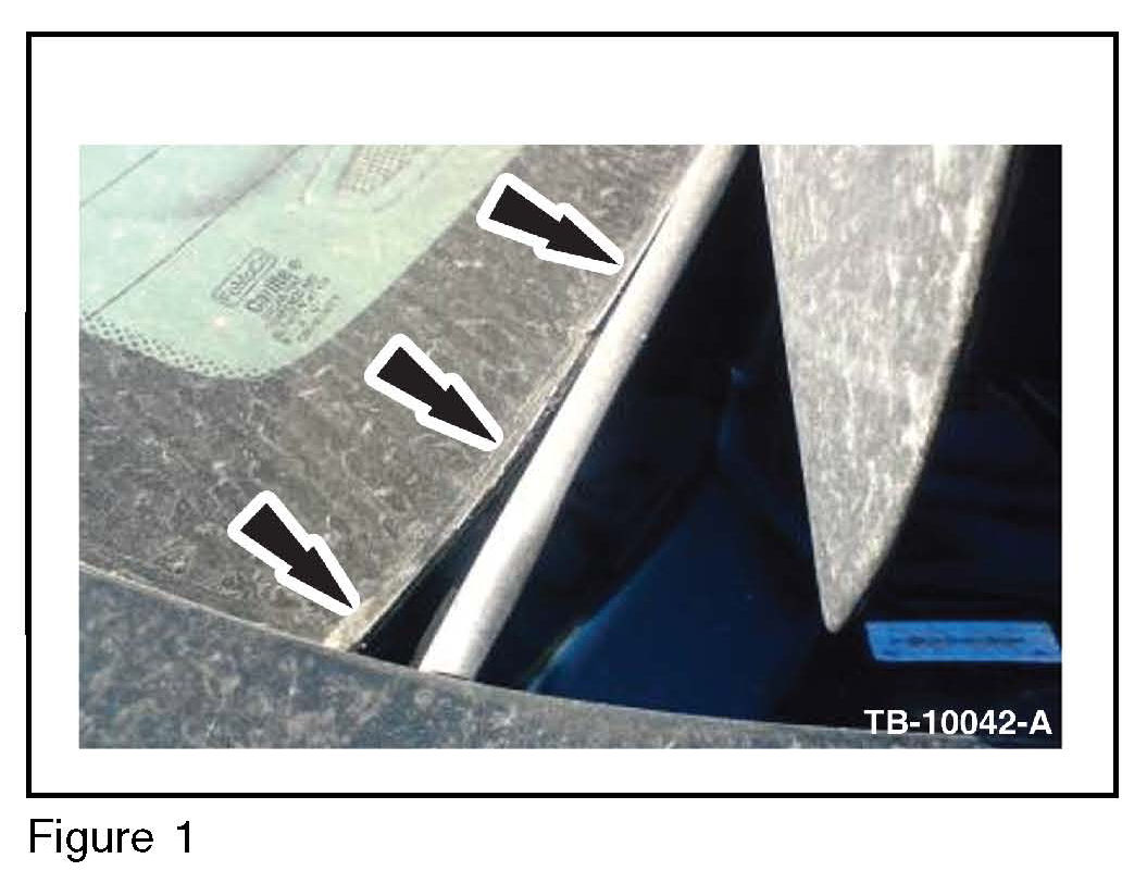 1. Inspect the moulding ends at the lower edge of the rear window glass.