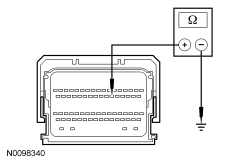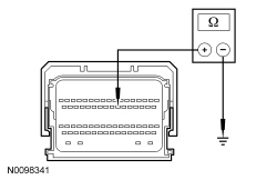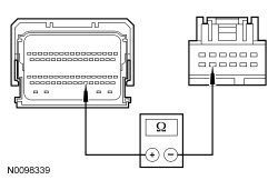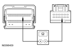 - Measure the resistance between PCM C175B-24, circuit CET42 (GN/VT) and ground.