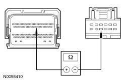 - Measure the resistance between the output side of BJB (Battery Junction Box) fuse 47 (10A) and selector lever harness C3233-8 circuit CBK03 (GY), vehicle harness side.