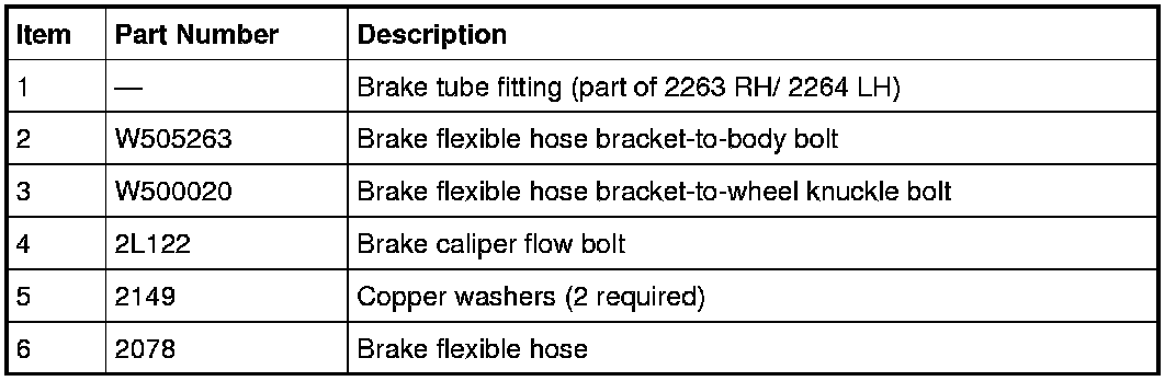1. Remove the brake caliper flow bolt and discard the 2 copper washers.